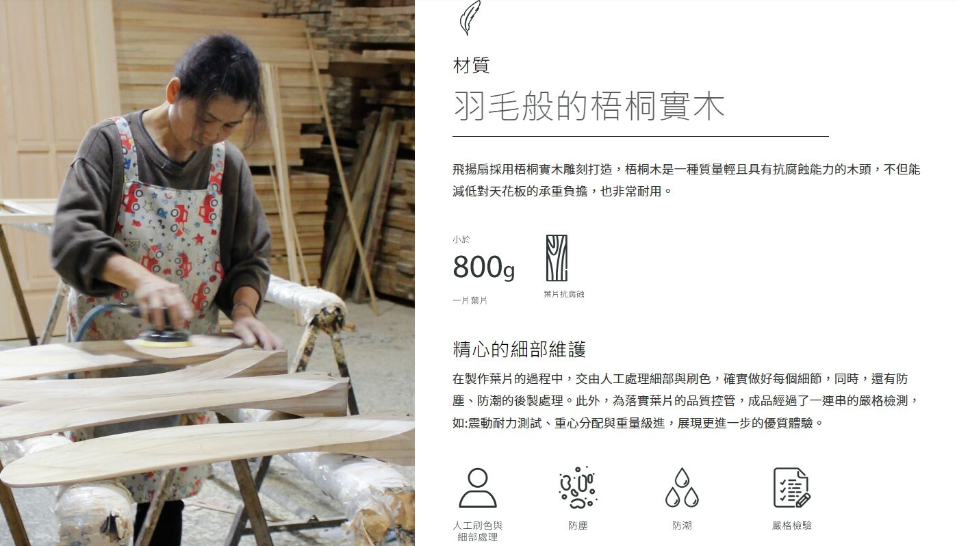 星羽吊扇採用了吸頂式的設計,安裝於樓高不高的空間中,不會讓人有太大的壓迫感。星羽吊扇採用DC馬達,六段變速調整,提供正反轉,不管夏天還是冬天都非常實用,葉片使用梧桐實木,木頭葉片讓整體吊扇質感提升且不死板,本體使用圓潤造型,整體搭配提供更為完善的舒適感。