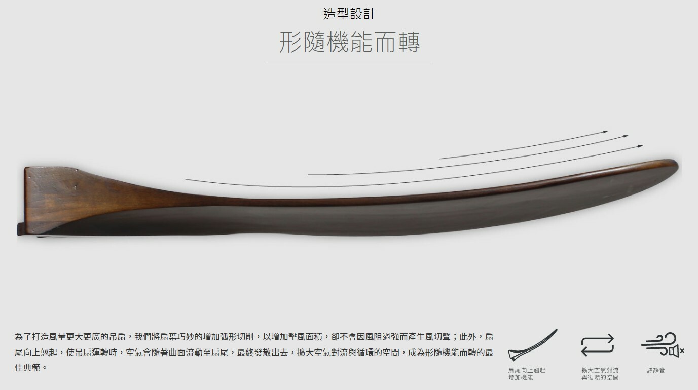 打造輕盈、高效能的吊扇,延展吊扇的使用壽命,如今,搭配著改良後的馬達與扇葉造型,更勝一籌。飛揚扇縮小了原有的馬達尺寸、採用質輕的梧桐木葉片、大弧度的造型曲線,不但不會發出任何噪音,也吹出更廣泛的涼風,因此,你可以以最舒服的方式,享受這靜靜的美好。