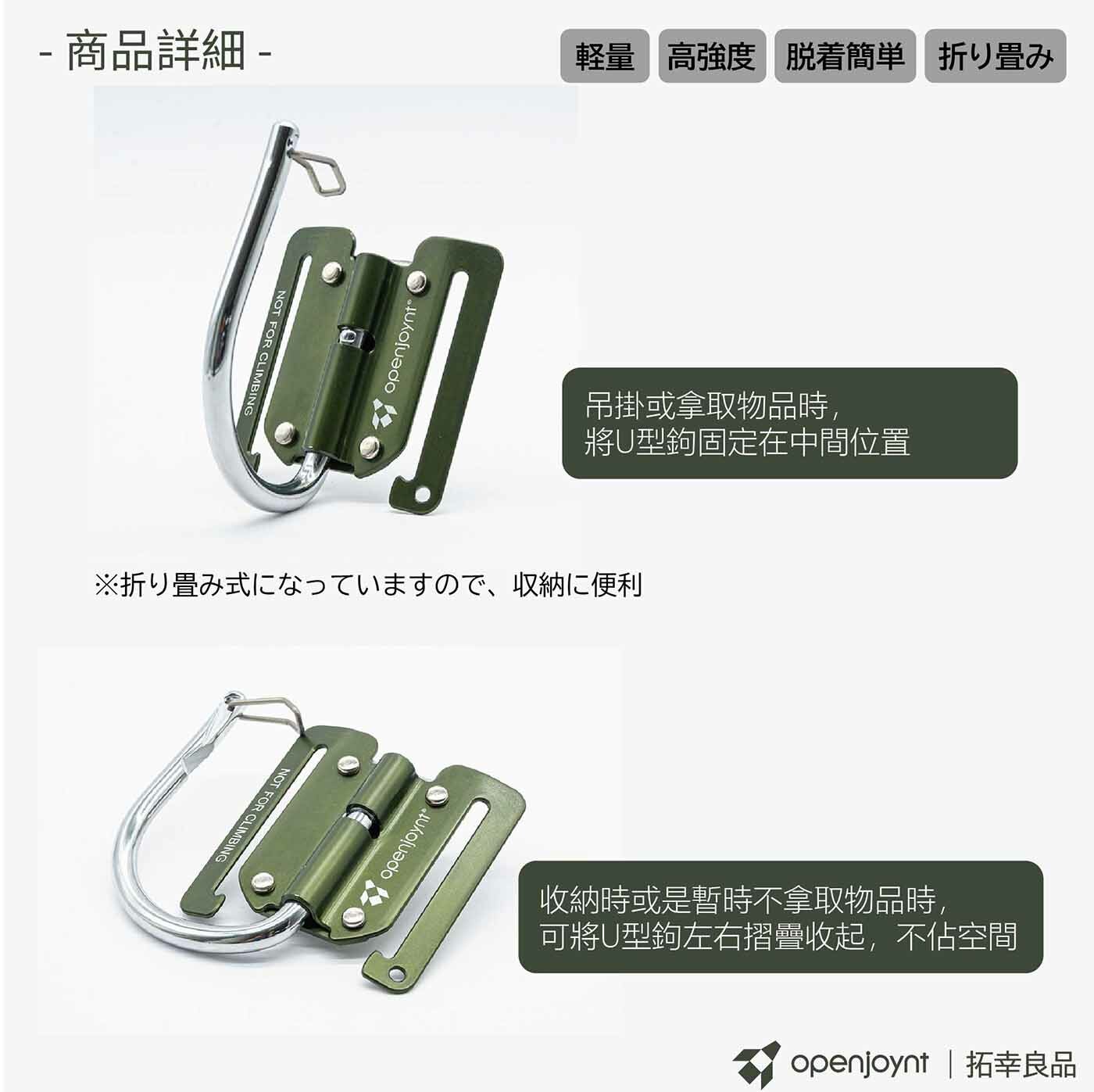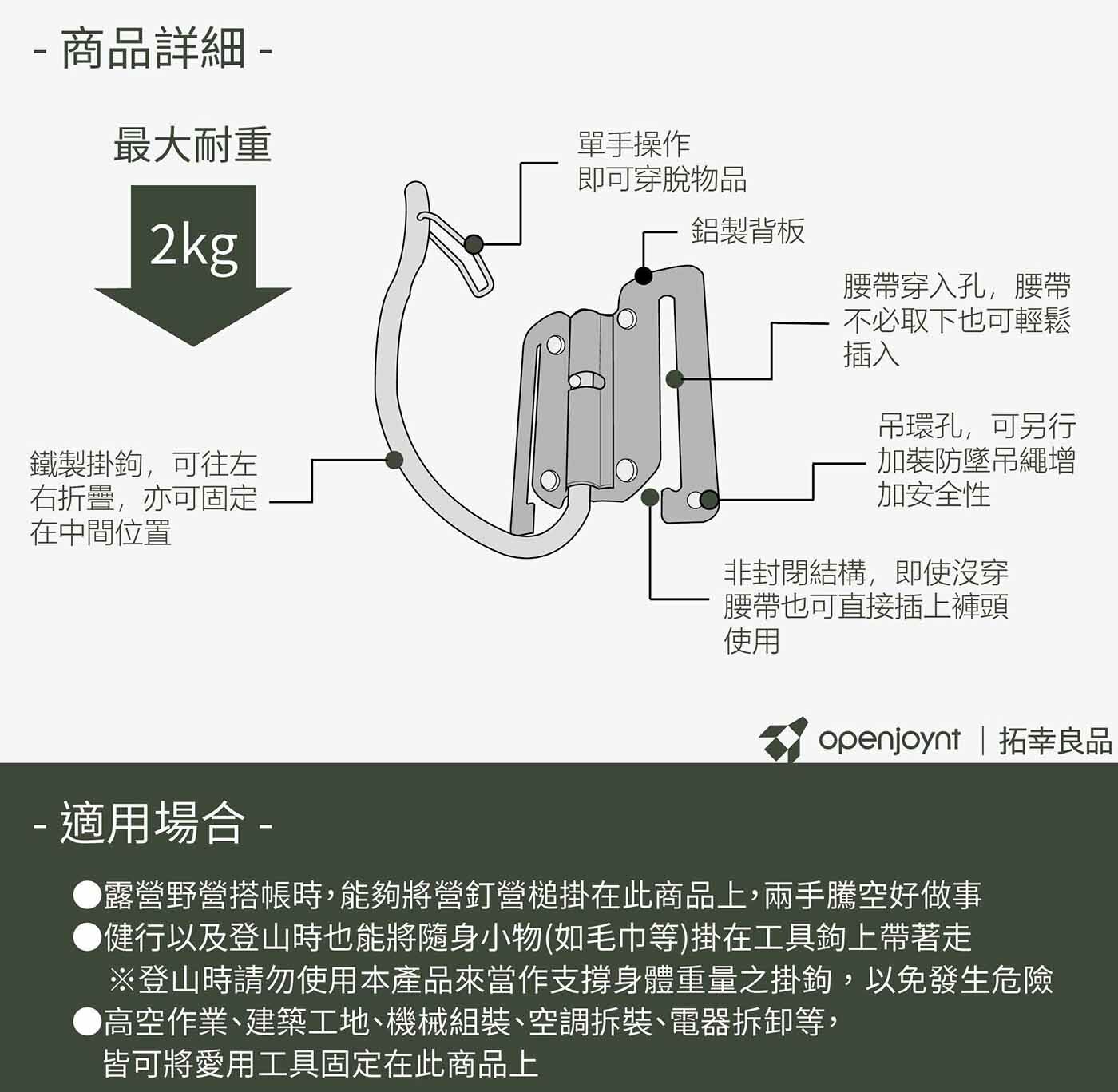 ※登山時請勿使用本產品來當作支撐身體重量之掛鉤,以免發生危險