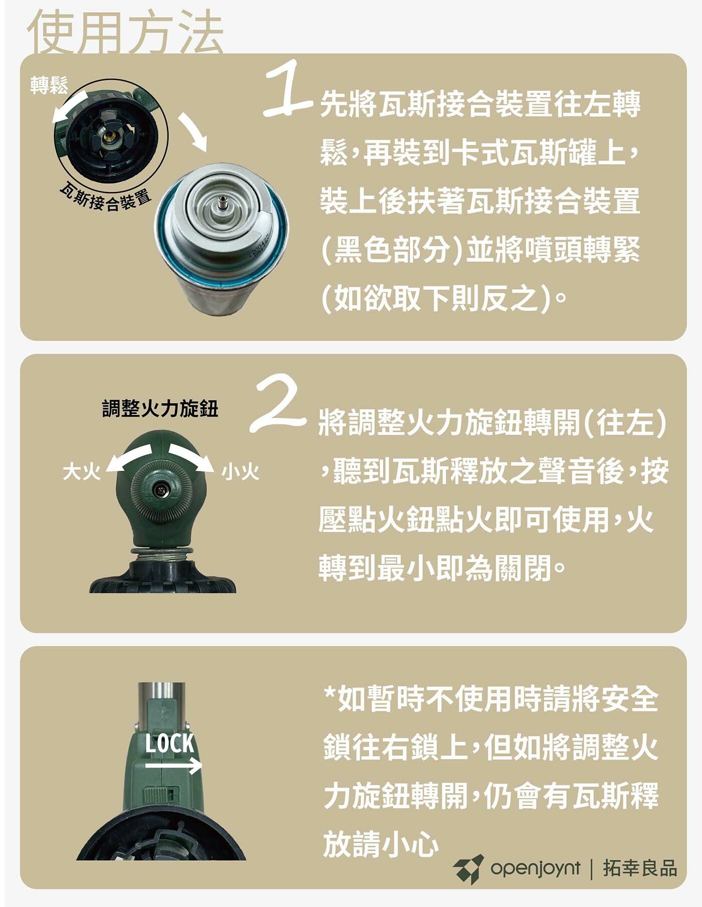 ※請確保噴管出火口處暢通,請勿沾到任何油漬髒污以免阻塞無法使用