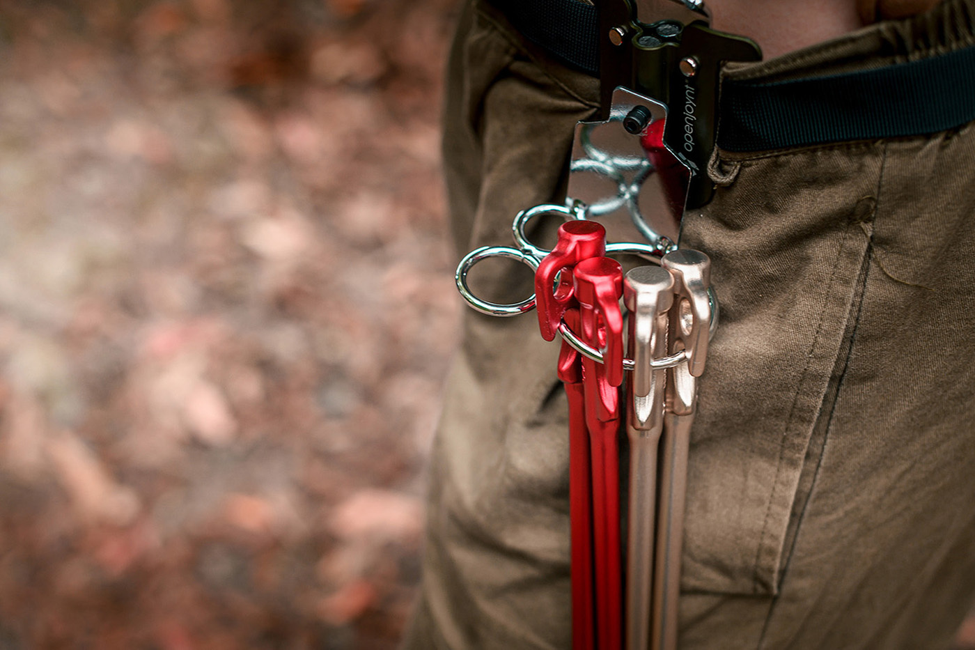 -露營搭帳時,可將愛用營槌及營釘掛在上面,讓雙手騰空能夠更輕鬆作業