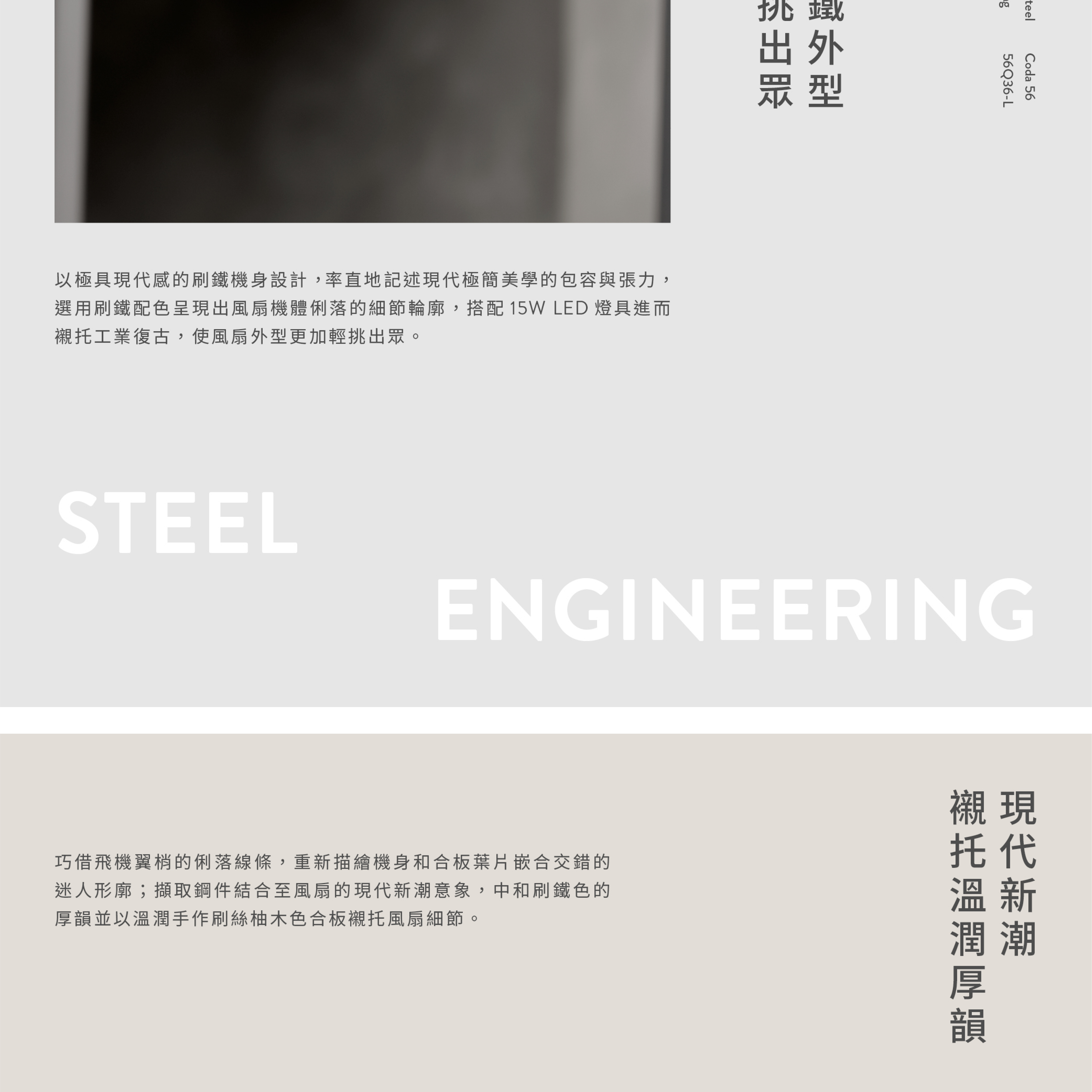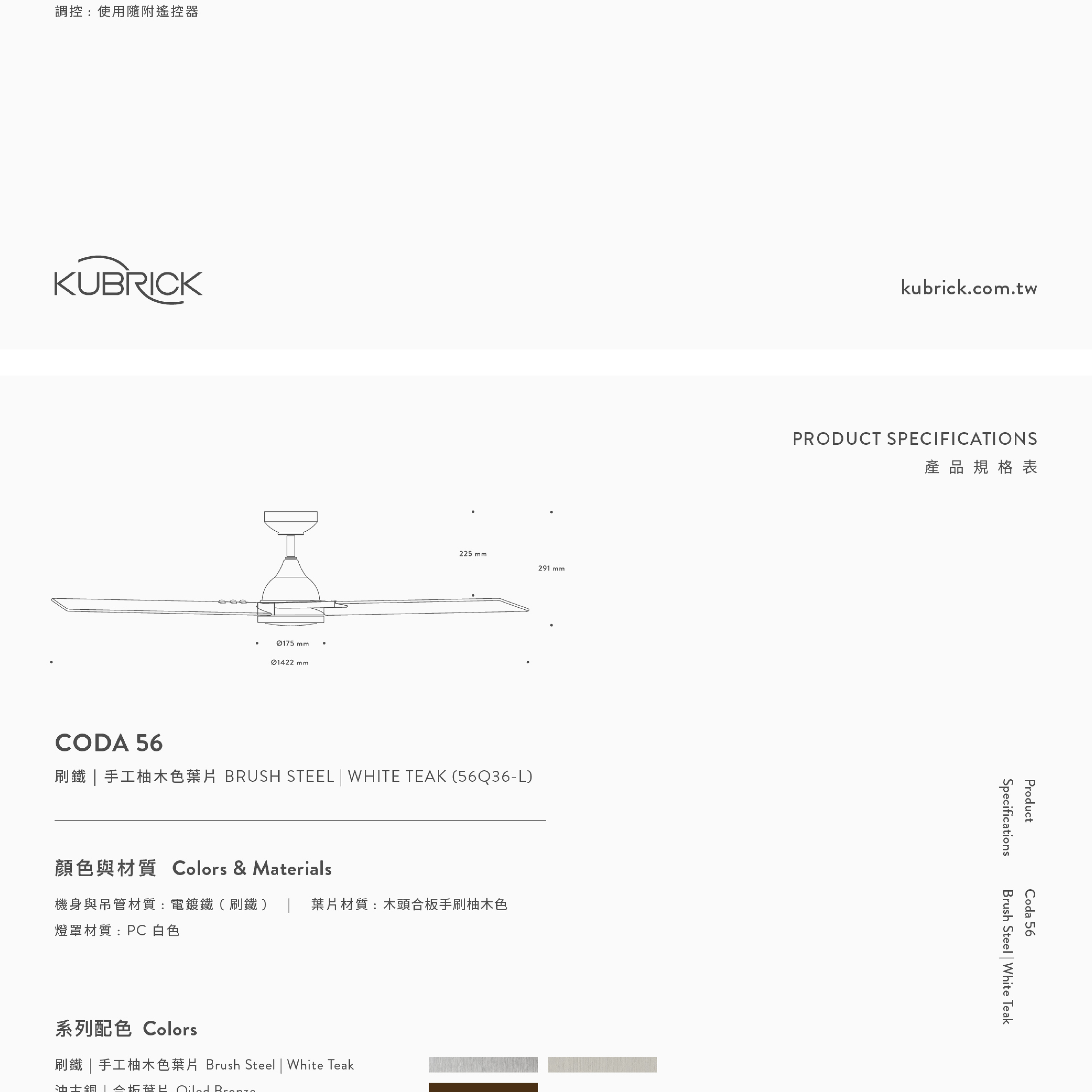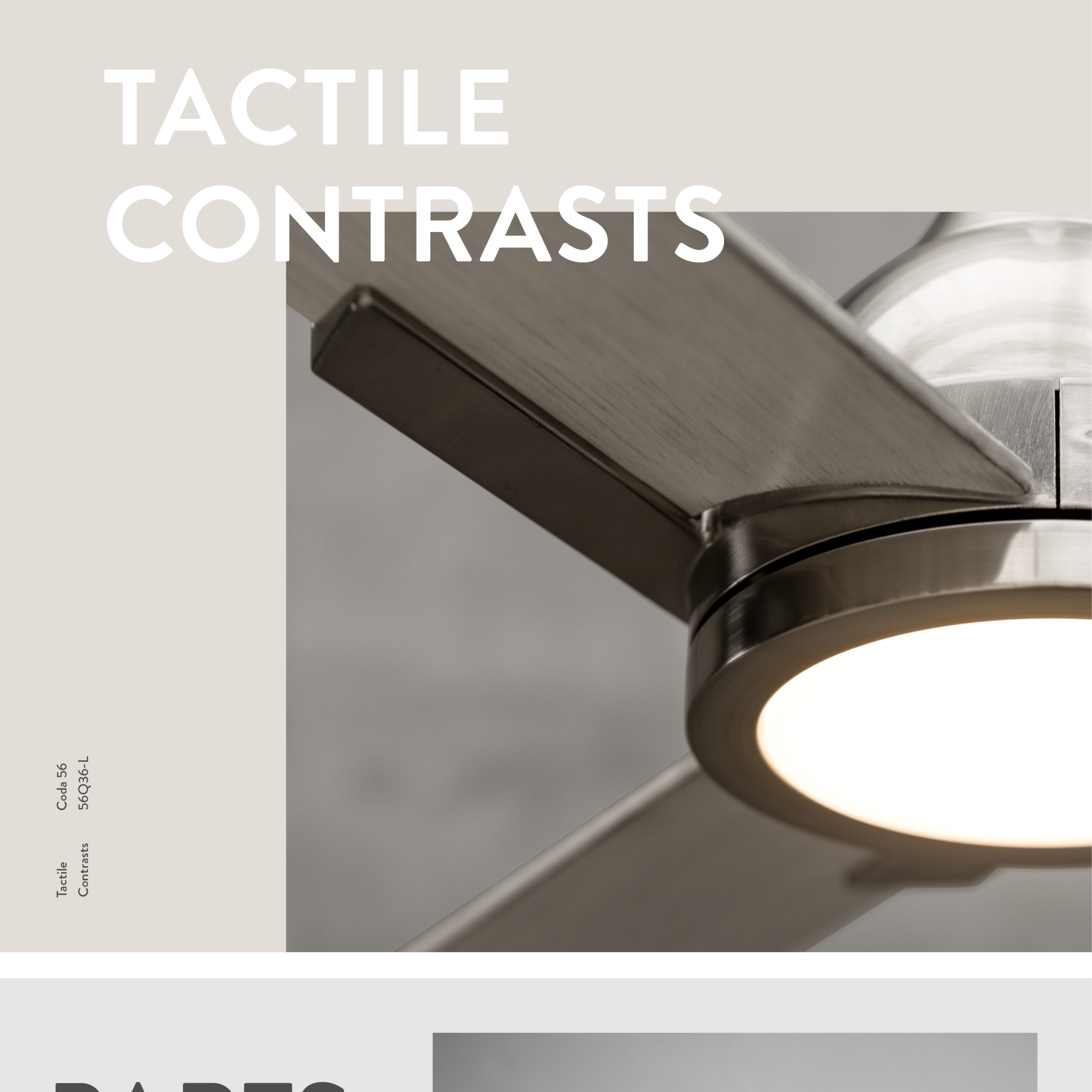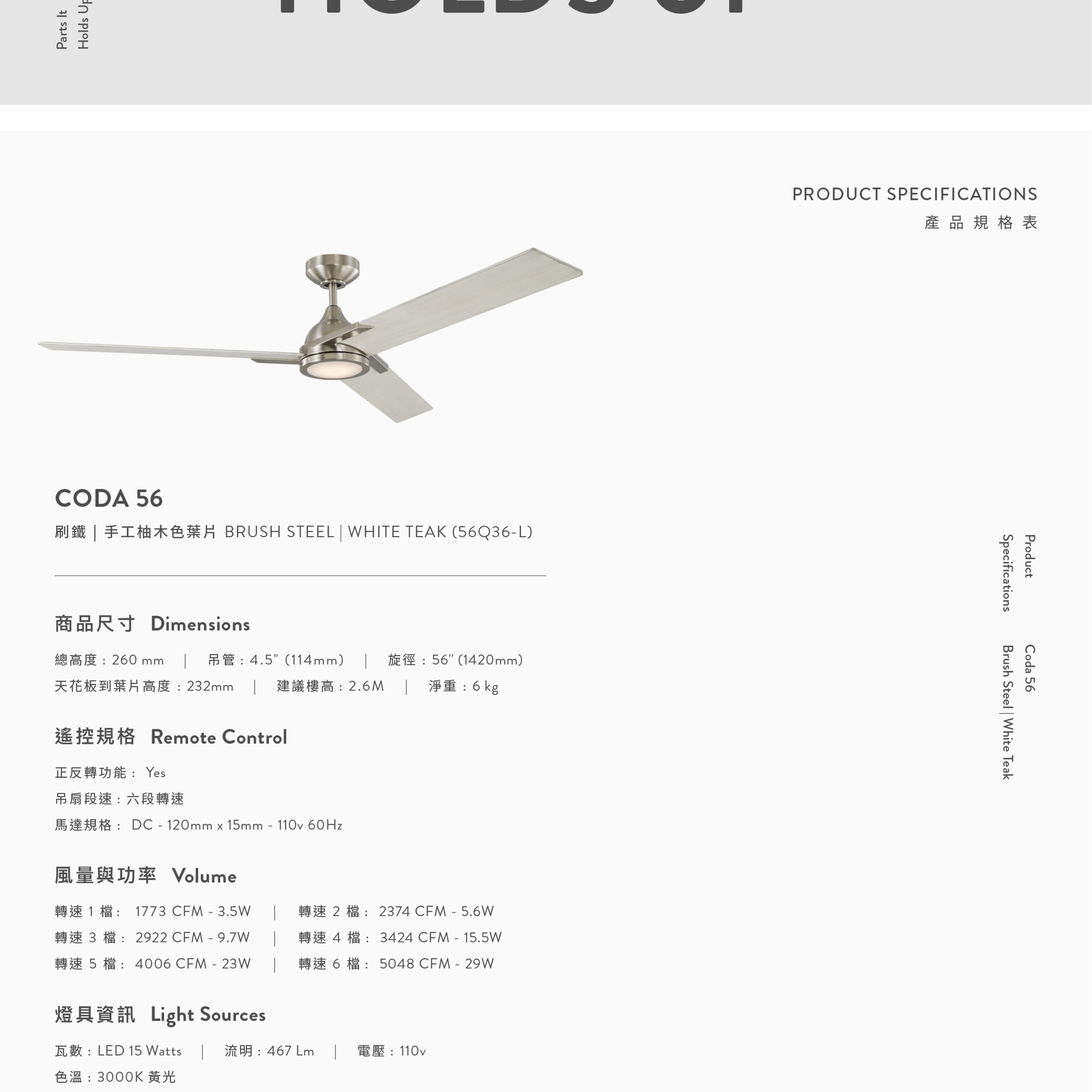 「CODA」一詞源自於拉丁語「Cauda」,原意為「尾巴」,由此啟發設計概念將連接機身的葉架尾端和合板葉片嵌合,進而形成交錯的迷人形廓,賦予風扇外型極簡而低調的設計細節